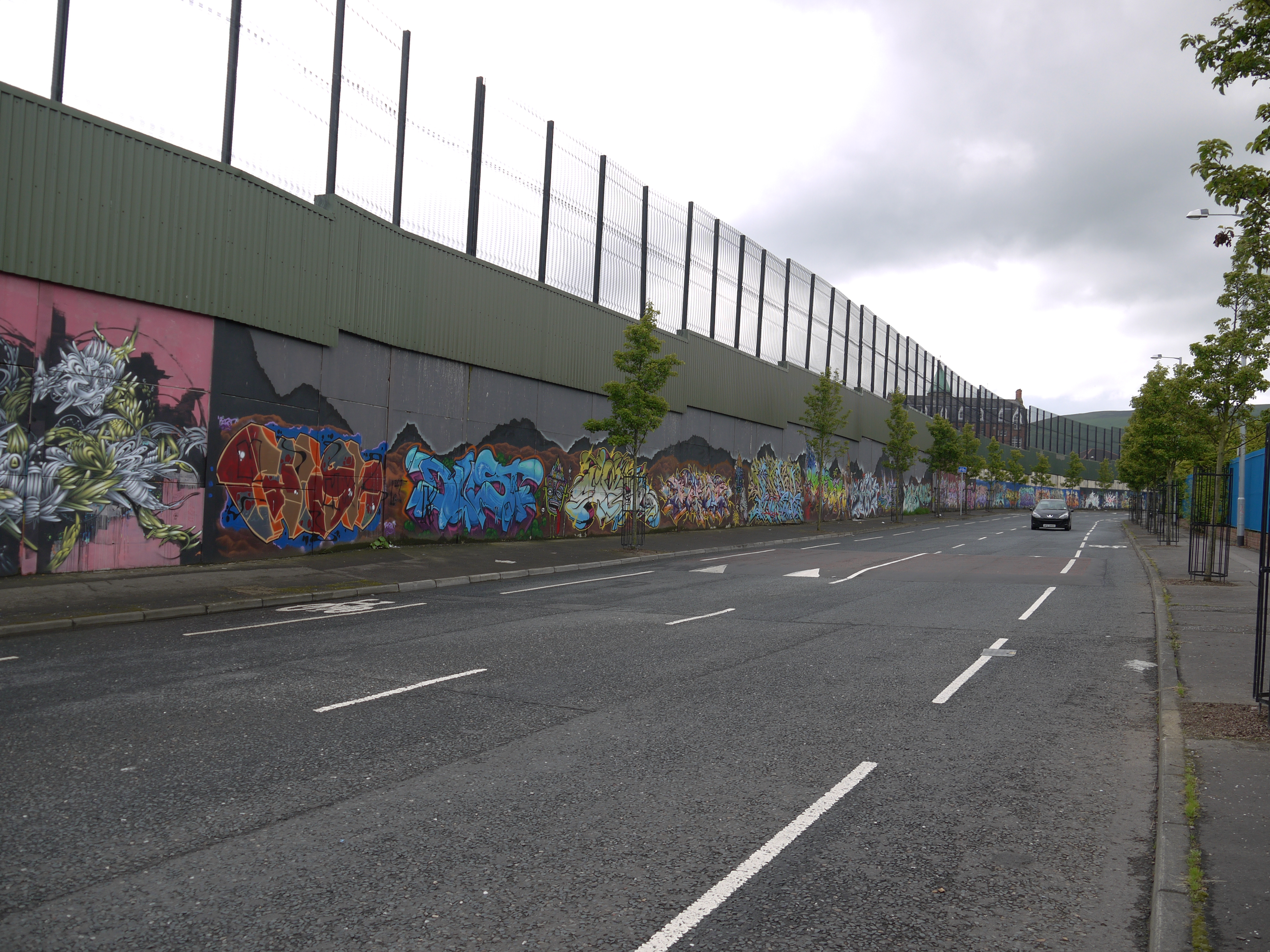 ← Previous Next → Looking down the peace wall toward Lanark Way. P1010421 Leave a comment Cancel reply Δ